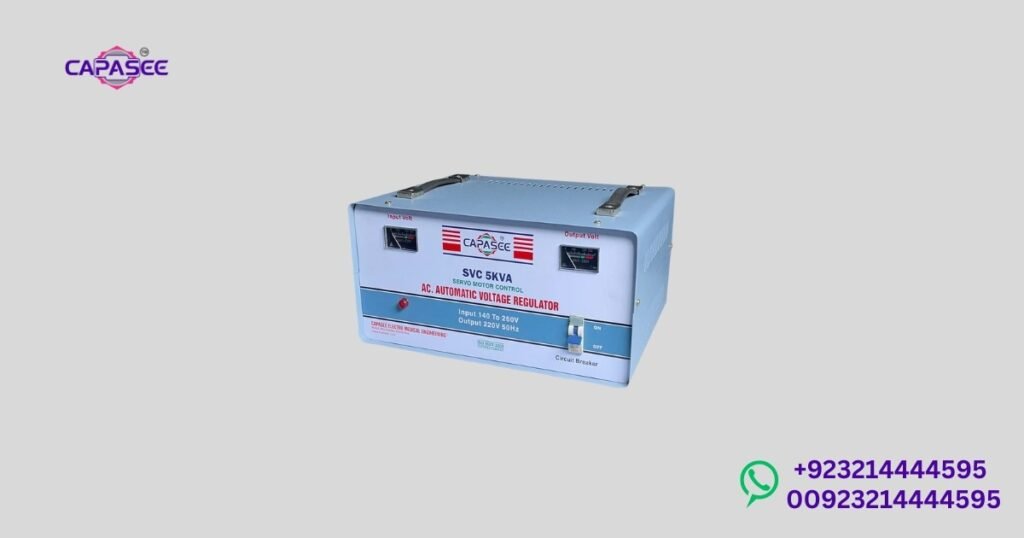 A 5000 watt stabilizer is typically PKR 20,000 to PKR 25,000, which is appropriate to support big fridges or freezers that have a wide input voltage stabilizer.